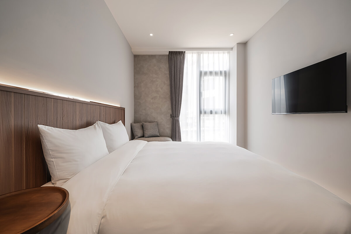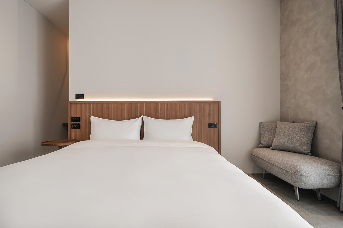 位於二樓的兩間雙人套房,採用溫潤木質色調與柔和燈光,打造放鬆自在的住宿氛圍。乾濕分離衛浴設計,讓旅人能在安靜的環境中享受簡單而質感的夜晚,無論是情侶出遊或閨蜜同遊都非常適合。